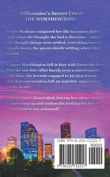 Grace Madison compared her life to a snow globe. Just when she thought she had a direction… when she thought things were settled, everything turned upside down, the pieces slowly settling where they would. Conner Worthington fell in love with Grace the first time he saw her. After barely even a conversation with him, she became engaged to his best friend. But that conversation left an indelible impression on his heart. When Grace's fiancé died, leaving her alone, would Conner step up and confess his feelings for her. Or would that be too awkward? An emotional and touching sweet rom com taking the reader on a roller coaster ride of feelings.