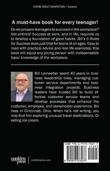 "Stepping into the working world for the first time can be daunting for teenagers. Bill's 5 Rules for Success is the ultimate guide that equips young adults with the essential knowledge and tools they need to excel in their first job and beyond. Written by seasoned professional Bill Leinweber, this book draws from nearly 40 years of experience to provide actionable advice that is both practical and inspiring. What You'll Learn: Show up: understand the critical importance of being present and how it sets the foundation for all other aspects of work life; Be on time: learn the value of punctuality and how it influences your credibility and reliability in the workplace; Be productive: discover strategies for maximizing your efficiency and making meaningful contributions every day; Show you care: find out how demonstrating genuine care for your work and colleagues can propel your career forward; Ask, 'how can I help?': embrace a collaborative mindset that fosters teamwork and showcases your willingness to contribute. In addition to these core rules, the book addresses what to do if you find yourself in a job that isn't a good fit and provides guidance on planning your next steps for continuous growth and success"--