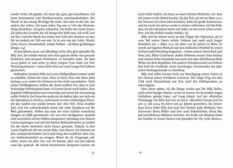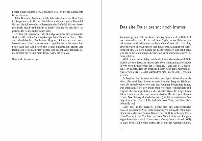 Steffen Radlmaier hat die vielen unbekannten Familiengeschichten des Idols in einem bewegenden Buch eingefangen und dafür akribisch recherchiert. Unter anderem führte er lange Interviews mit Billy Joel, seiner Tochter Alexa Ray Joel, seinem Vater Helmut und seinem Halbbruder Alexander. Doch dieses Buch erzählt ebenso von amerikanischer Musik und deutscher Geschichte, von Nürnberg, New York, Berlin, Auschwitz, Havanna und Wien, von Erfolg und Misserfolg, von Glück und Unglück, Sturm und Drang und Rock n Roll.