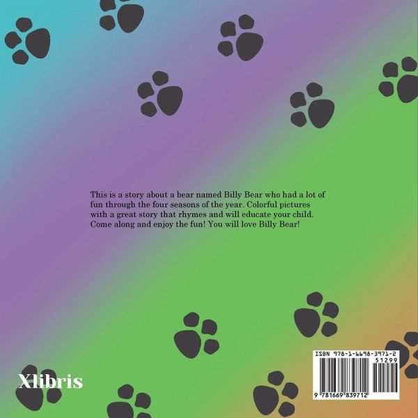 This is a story about a bear named Billy Bear who had a lot of fun through the four seasons of the year. Colorful pictures with a great story that rhymes and will educate your child. Come along and enjoy the fun! You will love Billy Bear!