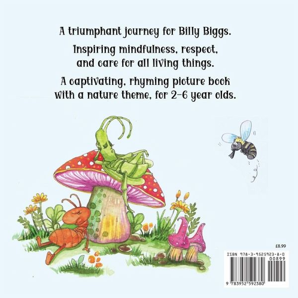 A triumphant journey for Billy Biggs saving insects from drowning in the lake. Inspiring mindfulness, respect, and care for all living things. A captivating, rhyming picture book with a nature theme, for 2-6 year olds.