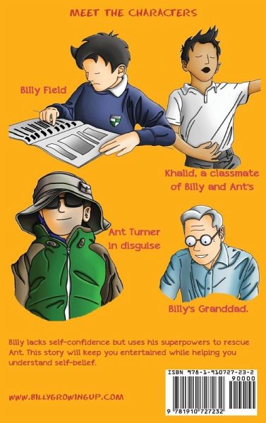 Suitable for girls and boys aged 7 to 9-years-old Children have to experience difficult situations in order to learn for themselves who they are. In the story, Billy is given an opportunity to act in the school play, but he tells himself he cannot do it. He convinces himself that he’s not good enough, and that he’ll never remember all the lines. He feels so unsure of himself and vulnerable, that he thinks of all the ways he can get out of playing a part. Instead opts to be a member of the stage crew, but he is very capable. By attending the rehearsals, unbeknownst to him, he learns the lines for all parts. When his best friend Ant, who is due to play the lead, has an accident, Billy finds that he has no option but to save the day and play the main part. By digging deep into his resources, and becoming his superhero, he realises that he is capable, and that he does have the ability. Billy Saves The Day is the sixth title in the Billy Growing Up series. Each book addresses a unique topic—bullying, arrogant pride, jealousy, lying, stealing, lack of self-belief, understanding money, and secrets. Written to help parents, guardians and teachers deal with the issues that challenge pre-teen children; each topic is presented gently through storytelling. Setting the issues in a meaningful context helps children to understand the challenges, and to see things from a different perspective. The books act as icebreakers allowing for discussions of difficult subjects. Additionally, each title is supported by a free activity book to reinforce the learning, while having fun. Buying this book today will assist your child in developing self-confidence, and seeing how they can overcome a lack of belief in themselves.
