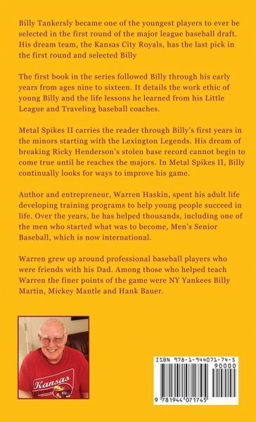 Billy Tankersly became one of the youngest players to ever be selected in the first round of the major league baseball draft. His dream team, the Kansas City Royals, had the last pick in the first round and selected Billy. The first book in the series followed Billy through his early years from ages nine to sixteen. It details the work ethic of young Billy and the life lessons he learned from his Little League and Traveling baseball coaches. Metal Spikes II carries the reader through Billy's first years in the minors, starting with the Lexington Legends. His dream of breaking Ricky Henderson's stolen base record cannot begin to come true until he reaches the majors. In Metal Spikes II, Billy continually looks for ways to improve his game. Author and Entrepreneur, Warren Haskin, spent his adult life developing training programs to help young people succeed in life. Over the years, he has helped thousands, including one of the men who started what was to become, Men's Senior Baseball, which is now international. Warren grew up around professional baseball players who were friends with his Dad. Among those who helped teach Warren the finer points of the game were NY Yankees Billy Martin, Mickey Mantle and Hank Bauer.