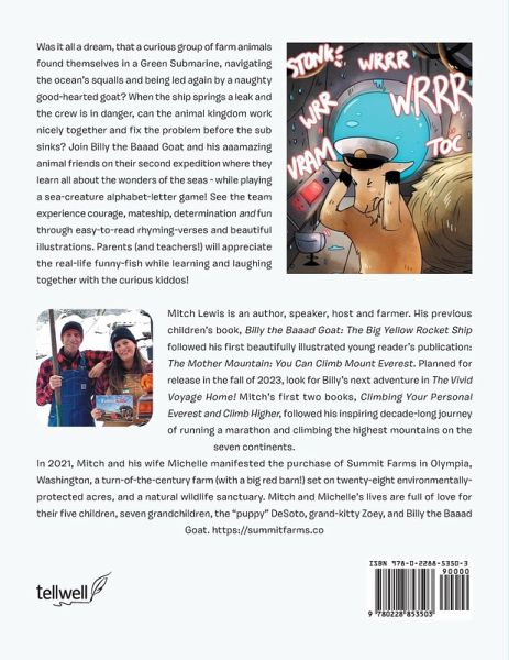 Was it all a dream, that a curious group of farm animals found themselves in a Green Submarine, navigating the ocean's squalls and being led again by a naughty good-hearted goat? When the ship springs a leak and the crew is in danger, can the animal kingdom work nicely together and fix the problem before the sub sinks? Join Billy the Baaad Goat and his aaamazing animal friends on their second expedition where they learn all about the wonders of the seas - while playing a sea-creature alphabet-letter game! See the team experience courage, mateship, determination and fun through easy-to-read rhyming-verses and beautiful illustrations. Parents (and teachers!) will appreciate the real-life funny-fish while learning and laughing together with the curious kiddos!