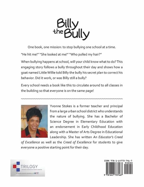 One book, one mission: to stop bullying one school at a time. "He hit me!" "She looked at me!" "Who pulled my hair?" When bullying happens at school, will your child know what to do? This engaging story follows a bully throughout their day and shows how a goat named Little Willie told Billy the bully his secret plan to correct his behavior. Did it work, or was Billy still a bully? Every school needs a book like this to circulate around to all classes in the building so that everyone is on the same page!