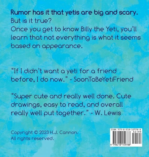 "You can't always judge a book by its cover." Looks can be deceiving and yetis look big and scary! But once you get to know Billy, he will help you change your mind about yetis.
