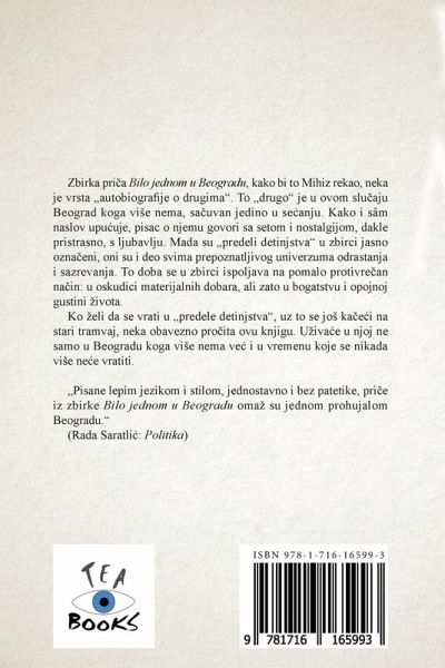 Zbirka pri¿a Bilo jednom u Beogradu, kako bi to Mihiz rekao, neka je vrsta "autobiografije o drugima". To "drugo" je u ovom slüaju Beograd koga vie nema, säuvan jedino u se¿anju. Kako i sâm naslov upüuje, pisac o njemu govori sa setom i nostalgijom, dakle pristrasno, s ljubavlju. Mada su "predeli detinjstva" u zbirci jasno oznäeni, oni su i deo svima prepoznatljivog univerzuma odrastanja i sazrevanja. To doba se u zbirci ispoljava na pomalo protivre¿an näin: u oskudici materijalnih dobara, ali zato u bogatstvu i opojnoj gustini ivota. Ko eli da se vrati u "predele detinjstva", uz to se jo käe¿i na stari tramvaj, neka obavezno pröita ovu knjigu. Uiväe u njoj ne samo u Beogradu koga vie nema ve¿ i u vremenu koje se nikada vie ne¿e vratiti. "Pisane lepim jezikom i stilom, jednostavno i bez patetike, pri¿e iz zbirke Bilo jednom u Beogradu oma su jednom prohujalom Beogradu." (Rada Saratli¿: Politika)