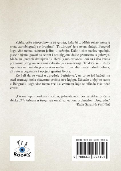 Zbirka pri¿a Bilo jednom u Beogradu, kako bi to Mihiz rekao, neka je vrsta "autobiografije o drugima". To "drugo" je u ovom slüaju Beograd koga vie nema, säuvan jedino u se¿anju. Kako i sâm naslov upüuje, pisac o njemu govori sa setom i nostalgijom, dakle pristrasno, s ljubavlju. Mada su "predeli detinjstva" u zbirci jasno oznäeni, oni su i deo svima prepoznatljivog univerzuma odrastanja i sazrevanja. To doba se u zbirci ispoljava na pomalo protivre¿an näin: u oskudici materijalnih dobara, ali zato u bogatstvu i opojnoj gustini ivota. Ko eli da se vrati u "predele detinjstva", uz to se jo käe¿i na stari tramvaj, neka obavezno pröita ovu knjigu. Uiväe u njoj ne samo u Beogradu koga vie nema ve¿ i u vremenu koje se nikada vie ne¿e vratiti. "Pisane lepim jezikom i stilom, jednostavno i bez patetike, pri¿e iz zbirke Bilo jednom u Beogradu oma su jednom prohujalom Beogradu." (Rada Saratli¿: Politika)