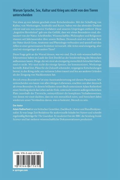 Vor etwa 45.000 Jahren haben wir Menschen uns mit der Schaffung von Kultur, Werkzeugen, Symbolik und Kunst von unseren Vorfahren und Ursprüngen entfernt. Diese "kognitive Revolution" gab uns das Gefühl, dass wir etwas Besonderes sind. Schriftsteller, Wissenschaftler, Philosophen und Religionen staunen seit Jahrtausenden über unsere Brillanz. Dennoch sind wir mit dem Rest der Natur durch Gene, Anatomie und Physiologie verbunden und in einer gemeinsamen Evolution verwurzelt. Alle Arten sind einzigartig, aber sind wir einzigartiger als andere Tiere?