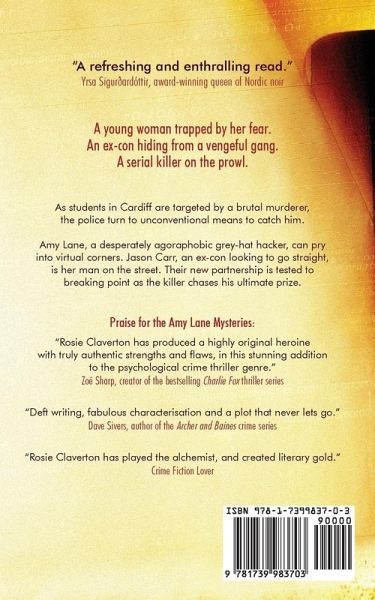 A young woman trapped by her fear. An ex-con hiding from a vengeful gang. A serial killer on the prowl. As students in Cardiff are targeted by a brutal murderer, the police turn to unconventional means to catch him. Amy Lane, a desperately agoraphobic grey-hat hacker, can pry into virtual corners. Jason Carr, an ex-con looking to go straight, is her man on the street. Their new partnership is tested to breaking point as the killer chases his ultimate prize.