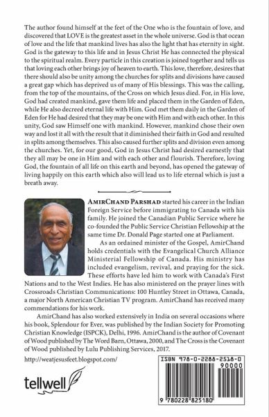 The author found himself at the feet of the One who is the fountain of love, and discovered that LOVE is the greatest asset in the whole universe. God is that ocean of love and the life that mankind lives has also the light that has eternity in sight. God is the gateway to this life and in Jesus Christ He has connected the physical to the spiritual realm. Every particle in this creation is joined together and tells us that loving each other brings joy of heaven to earth. This love, therefore, desires that there should also be unity among the churches for splits and divisions have caused a great gap which has deprived us of many of His blessings. This was the calling, from the top of the mountains, of the Cross on which Jesus died. For, in His love, God had created mankind, gave them life and placed them in the Garden of Eden, while He also decreed eternal life with Him. God met them daily in the Garden of Eden for He had desired that they may be one with Him and with each other. In this unity, God saw Himself one with mankind. However, mankind chose their own way and lost it all with the result that it diminished their faith in God and resulted in splits among themselves. This also caused further splits and division even among the churches. Yet, for our good, God in Jesus Christ had desired earnestly that they all may be one in Him and with each other and flourish. Therefore, loving God, the fountain of all life on this earth and beyond, has opened the gateway of living happily on this earth which also will lead us to life eternal which is just a breath away.