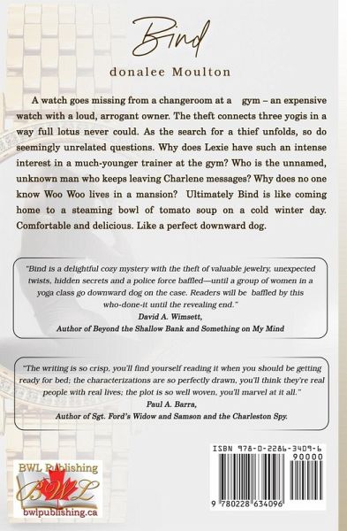 A watch goes missing from a changeroom at a gym - an expensive watch with a loud, arrogant owner. The theft connects three yogis in a way full lotus never could. As the search for a thief unfolds, so do seemingly unrelated questions. Why does Lexie have such an intense interest in a much-younger trainer at the gym? Who is the unnamed, unknown man who keeps leaving Charlene messages? Why does no one know Woo Woo lives in a mansion? Ultimately Bind is like coming home to a steaming bowl of tomato soup on a cold winter day. Comfortable and delicious. Like a perfect downward dog.