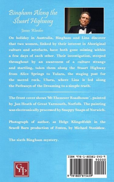 On holiday in Australia, Bingham and Lina come across a stranded motorist, his car hung partway up a tree, the result of avoiding a kangaroo. Their act of kindness takes them to Yulara, the staging post for the sacred rock, Uluru, where they meet Nellie Doolan, an Aboriginal of mixed race, and, eventually, her father. While there, they are told that Helen Lewis, who runs the local Aboriginal art gallery, has gone missing. Arriving in Alice Springs, they visit a similar gallery where the owner, Marjory Fink, has also disappeared. Talking with the locals, particularly the woman's son, Henry, and her former lover, Ben Evans, they find little cause for concern. Bingham, however, takes the view that coincidences are for Russian novels and he begins asking questions that leads to an investigation by him and Lina that takes them back and forth along the Stuart Highway, visiting the roadhouses as they go. Their search is marked throughout by an awareness of the strange and startling Aboriginal culture which leads Lina, alone in the region of the sacred rock, along the Pathways of the Dreaming and a simple truth. This is the sixth in the Bingham series of novels and the first in which he and his wife, Lina, are both involved in an investigation from the very beginning.