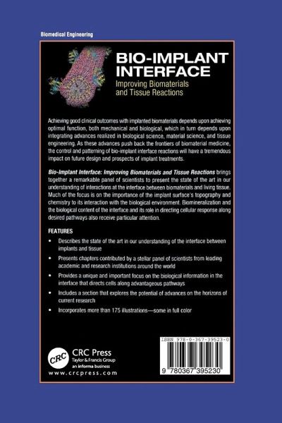 Bringing together a remarkable group of scientists, Bio-Implant Interface: Improving Biomaterials and Tissue Reactions describes interactions at the interface between biomaterials and living tissue. Much of the focus is on the importance of the implant surface's topography and chemistry to its interaction with the biological environment. Biomineralization along with the biological content of the interface and its role in directing cellular response along desired pathways also receive particular attention. The book includes a section that explores the potential of advances on the horizons of current research and more than 175 illustrations-many in full color.