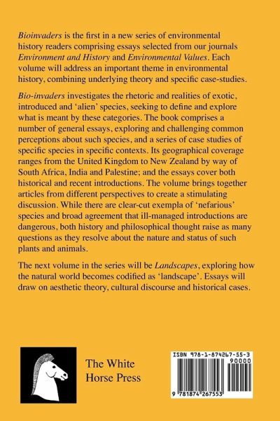We are pleased to announce a new series of environmental history readers, suitable for students. Comprising essays selected from our journals, Environment and History and Environmental Values, each inexpensive paperback volume will address an important theme in environmental history, combining underlying theory and specific case-studies. The first volume, Bio-invaders, investigates the rhetoric and realities of exotic, introduced and 'alien' species. The book comprises a number of general essays, exploring and challenging common perceptions about such species, and a series of case studies of specific species in specific contexts. Its geographical coverage ranges from the United Kingdom to New Zealand by way of South Africa, India and Palestine; and the essays cover both historical and recent introductions.