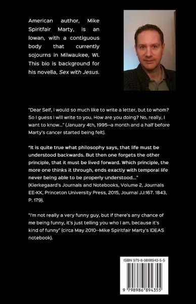 "Dear Self, I would so much like to write a letter, but to whom? So I guess I will write to you. How are you doing? No, really, I want to know..." (January 4th, 1995--a month and a half before Marty's cancer started being felt). "It is quite true what philosophy says, that life must be understood backwards. But then one forgets the other principle, that it must be lived forward. Which principle, the more one thinks it through, ends exactly with temporal life never being able to be properly understood..." (Kierkegaard's Journals and Notebooks, Volume 2, Journals EE-KK, Princeton University Press, 2015, Journal JJ:167. 1843, P. 179). "I'm not really a very funny guy, but if there's any chance of me being funny, it's just telling you who I am, because it's kind of funny" (circa May 2010--Mike Spiritfair Marty's IDEAS notebook).
