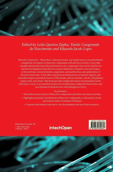 Bioactive Compounds - Biosynthesis, Characterization, and Applications is an authoritative compilation of chapters on bioactive compounds with proven activities. It provides valuable information about biosynthesized active compounds that can be used for the further development of products in various industries. Chapters cover such topics as biosynthesis, characterization, separation, and purification, and applications of bioactive molecules. It describes and discusses bioresources of animal, vegetal, and microbial origin as potential sources of flavonoids, polysaccharides, sterols, polyphenols, amino acids, and others. This book provides insight into future developments in the field and, as such, is an essential resource for academicians, industrial researchers, and practitioners in biomolecules with biological activity. Key features: ¿ Describes several classes of bioactive compounds and their associated activities ¿ Highlights potential contributions of bioactive compounds as alternatives in the prevention and/or treatment of diseases ¿ Contains information relevant to the development and use of new products