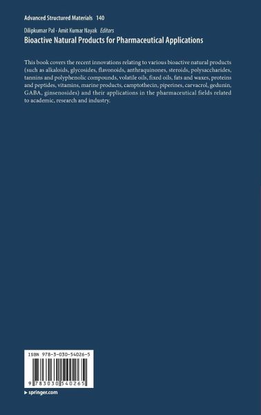 This book covers the recent innovations relating to various bioactive natural products (such as alkaloids, glycosides, flavonoids, anthraquinones, steroids, polysaccharides, tannins and polyphenolic compounds, volatile oils, fixed oils, fats and waxes, proteins and peptides, vitamins, marine products, camptothecin, piperines, carvacrol, gedunin, GABA, ginsenosides) and their applications in the pharmaceutical fields related to academic, research and industry.