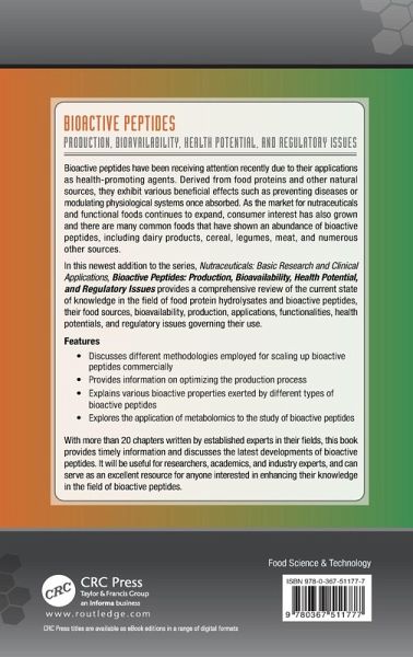 In this newest addition to the series Nutraceuticals: Basic Research and Clinical Applications, Bioactive Peptides: Production, Bioavailability, Health Potential, and Regulatory Issues provides a comprehensive review of the current state of knowledge in the field of food protein hydrolysates and bioactive peptides, their food sources, bioavailability, production, applications, functionalities, health potentials, and regulatory issues governing their use.