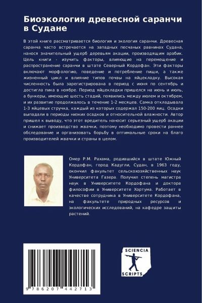 V ätoj knige rassmatriwaetsq biologiq i äkologiq saranchi. Drewesnaq sarancha chasto wstrechaetsq na zapadnyh peschanyh rawninah Sudana, nanosq znachitel'nyj uscherb derew'qm akacii, proizwodqschim arabik. Cel' knigi - izuchit' faktory, wliqüschie na peremeschenie i rasprostranenie saranchi w shtate Sewernyj Kordofan. Jeti faktory wklüchaüt morfologiü, powedenie i potreblenie pischi, a takzhe zhiznennyj cikl i wliqnie tipow pochwy na qjcekladku. Vysokaq chislennost' byla zaregistrirowana w period s iünq po sentqbr' i dostigla pika w noqbre. Period qjcekladki prishelsq na iün' i iül', a bunkery, imeüschie shest' stadij, poqwilis' mezhdu iülem i oktqbrem, i ih razwitie prodolzhalos' w techenie 1-2 mesqcew. Samka otkladywala 1-3 qjcewyh struchka, kazhdyj iz kotoryh soderzhal 150-200 qic. Osadki wypadali w periody nizkih osadkow i otnositel'noj wlazhnosti. Awtor prishel k wywodu, chto ätot wreditel' nanosit ser'eznyj uscherb akacii i snizhaet proizwodstwo zhwachki, poätomu neobhodimo prowesti rannee obsledowanie i organizowat' bor'bu w optimal'nye sroki na blago proizwoditelej zhwachki i strany w celom.