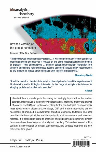 Interdisciplinary knowledge is becoming increasingly important to the modern scientist. This invaluable textbook covers bioanalytical chemistry (mainly the analysis of proteins and DNA) and explains everything for the non-biologist. Electrophoresis, mass spectrometry, biosensors, bioassays, DNA and protein sequencing are not necessarily all included in conventional analytical chemistry textbooks. The book describes the basic principles and the applications of instrumental and molecular methods. It is particularly useful to chemistry and engineering students who already have some basic knowledge about analytical chemistry. This revised second edition contains a new chapter on optical spectroscopy, and updated methods and new references throughout. Andreas Manz received the 2015 Inventor Award for "Lifetime Achievement" from the European Patent Office. Petra S Dittrich will be presented with the Heinrich-Emanuel-Merck Award 2015 at EuroAnalysis2015 Conference.