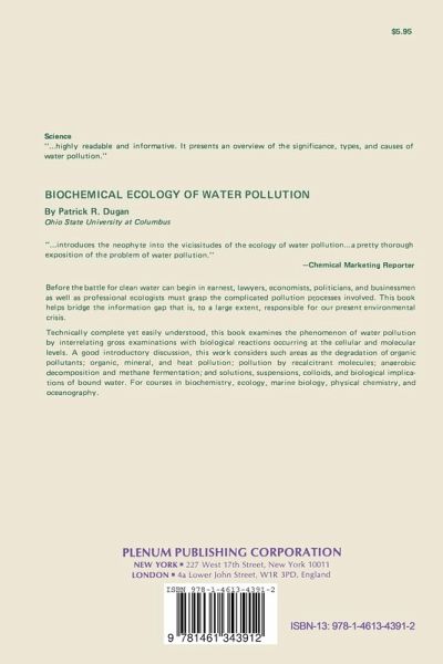 Biochemical ecology is here presented only in the context of water pollution. This is not to minimize the importance of land animals and plants in their environment or the significance of air pollution as it relates to ecology. It merely indicates that water pollution is a problem of sufficiently broad magnitude to warrant consideration by itself. Water pollution is a problem which requires the attention of a variety of disciplines. The presentation tends therefore to follow the problem ap proach, as do most interdisciplinary topics. An appreciation of various viewpoints is needed among chemists, ecologists, economists, engineers, lawyers, limnologists, managers, microbiologists, and politicians, whose communications are often "hung up" in each other's jargon. Perhaps the presentation is too elementary at times. This was done in an attempt to bridge the diverse backgrounds of those concerned with the subject. It is hoped that engineers, economists, biologists, public servants, and others will gain a greater appreciation of the interrelationship of gross observations and biological events that occur at the cellular and molecular level. Lack of such understanding is, to a large extent, the reason for our present environmental condition. At other times the presentation is perhaps too technical. This was done on the assumption that some information on chemical details may not be readily available but is desirable for an "in depth" appreciation of the biochemical events encountered in water pollu tion.