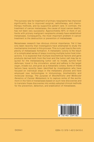 One - Biochemistry and Molecular Biology Aspects.- 1. Biochemical and molecular biology approaches to study cancer metastases.- 2. Use of the chick embryo in studying the molecular genetics of metastasis.- 3. Integral membrane adhesion glycoproteins: What is their fate during metastasis?.- 4. Peptide fragments of fibronectin and laminin: Role in cell adhesion and inhibition of experimental tumor metastasis.- 5. Role of ras oncogenes in experimental models of metastasis.- 6. Expression of p21ras gene products in fresh primary and metastatic human tumor tissue.- 7. A role for differentiation arrest in the development of neural crest tumors.- 8. Genetic and epigenetic regulation of the metastatic phenotype: A basis for resolving the controversy regarding its selective or random nature and variable phenotypic stability.- 9. Cytochemical cell typing of metastatic tumors according to their cytoskeletal proteins.- 10. Biochemistry and molecular biology RAW117 large cell lymphoma.- 11. Karyotypic progression and metastasis formation of human tumors.- 12. Morphological and functional alterations of occludens, adherens, and gap junctions in cancer.- 13. Pattern of basement membrane degradation by metastatic tumor cell enzymes.- Two - Immunologic Mechanisms.- 14. Gene products of the major histocompatibility complex control the metastatic phenotype of tumor cells.- 15. Generation of metastatic cells via somatic cell fusion: A possible mechanism for tumor progression in-vivo.- 16. The recognition and destruction of metastatic cells by tumoricidal macrophages.- 17. Biological response modifiers for the therapy of metastases.- 18. Differences in cell surface characteristics of poorly and highly metastatic Lewis lung tumor variants.- 19. Characteristics of LL2 and itslectin-resistant not metastasizing variants.- 20. A role for cell surface sialic acid in liberating metastatic tumor cells from host control.- Three - Clinical Perspectives and Applications.- 21. Tumor heterogeneity and empirical clinical cancer chemotherapy: Current status and future prospects.- 22. Hormonal regulation of metastases: Prospects for pharmacological manipulation.- 23. Use of anti-tumor MABs for diagnosis and immunotherapy of human tumors.- 24. New approaches to the adoptive immunotherapy of established metastatic cancer using lymphokine-activated killer cells and recombinant interleukin-2.- 25. Preclinical screening of biological response modifiers: Application to the treatment of metastatic disease.