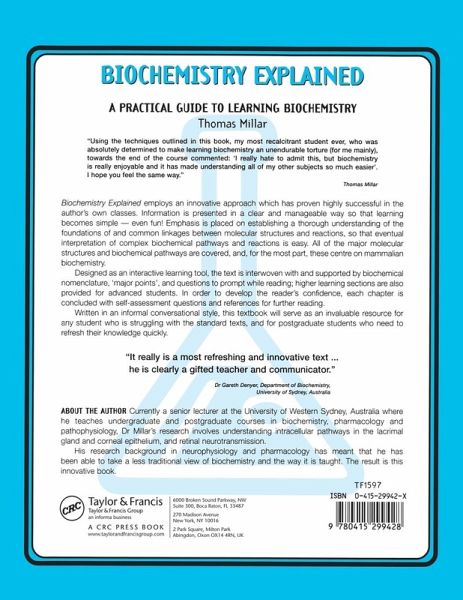 Biochemistry Explained employs an innovative approach which has proven highly successful in the author's own classes. The author establishes a thorough understanding of the foundations of and common linkages between molecular structures and reactions, so that eventual interpretation of complex biochemical pathways and reactions is easy. All of the major molecular structures and biochemical pathways are explained, and, for the most part, these center on mammalian biochemistry. The text is supported by biochemical nomenclature and questions to bear in mind while reading. Higher learning sections are also provided for advanced students. Written in an informal, conversational style, this textbook will serve as an invaluable resource for any student who is struggling with the standard texts and for postgraduate students who need to refresh their knowledge.