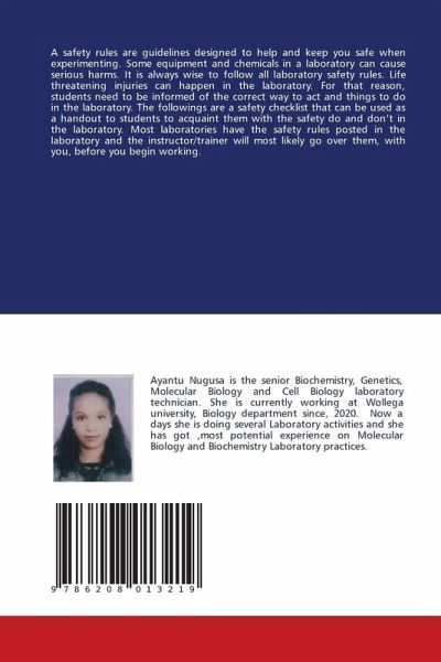A safety rules are guidelines designed to help and keep you safe when experimenting. Some equipment and chemicals in a laboratory can cause serious harms. It is always wise to follow all laboratory safety rules. Life threatening injuries can happen in the laboratory. For that reason, students need to be informed of the correct way to act and things to do in the laboratory. The followings are a safety checklist that can be used as a handout to students to acquaint them with the safety do and don't in the laboratory. Most laboratories have the safety rules posted in the laboratory and the instructor/trainer will most likely go over them, with you, before you begin working.