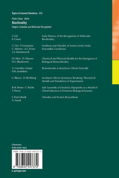 "It constitutes a step forward from previous books on the subject by covering the origin and evolution of chirality through different scales and approaches. ... The book benefits from many colour illustrations, together with comprehensive lists of references at the end of each chapter that will be very helpful for further detailed study of the various topics. ... I strongly recommend it to the intended readership of graduate students and researchers in academia and industry." (Laurence D. Barron, Origins of Life and Evolution of Biospheres, February, 2014)
