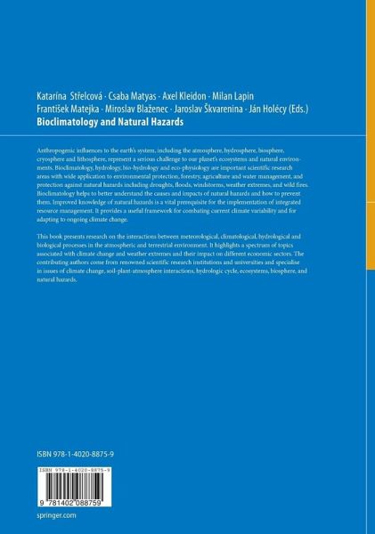 Anthropogenic influences to the earth's system, including the atmosphere, hydrosphere, biosphere, cryosphere and lithosphere, represent a serious challenge to our planet's ecosystems and natural environments. Bioclimatology, hydrology, bio-hydrology and eco-physiology are important scientific research areas with wide application to environmental protection, forestry, agriculture and water management, and protection against natural hazards including droughts, floods, windstorms, weather extremes, and wild fires. Bioclimatology helps to better understand the causes and impacts of natural hazards and how to prevent them. Improved knowledge of natural hazards is a vital prerequisite for the implementation of integrated resource management. It provides a useful framework for combating current climate variability and for adapting to ongoing climate change.