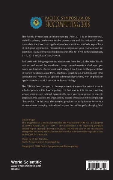 The Pacific Symposium on Biocomputing (PSB) 2018 is an international, multidisciplinary conference for the presentation and discussion of current research in the theory and application of computational methods in problems of biological significance. Presentations are rigorously peer reviewed and are published in an archival proceedings volume. PSB 2018 will be held on January 3 – 7, 2018 in Kohala Coast, Hawaii. PSB 2018 will bring together top researchers from the US, the Asian Pacific nations, and around the world to exchange research results and address open issues in all aspects of computational biology. It is a forum for the presentation of work in databases, algorithms, interfaces, visualization, modeling, and other computational methods, as applied to biological problems, with emphasis on applications in data-rich areas of molecular biology. The PSB has been designed to be responsive to the need for critical mass in sub-disciplines within biocomputing. For that reason, it is the only meeting whose sessions are defined dynamically each year in response to specific proposals. PSB sessions are organized by leaders of research in biocomputing's "hot topics." In this way, the meeting provides an early forum for serious examination of emerging methods and approaches in this rapidly changing field.