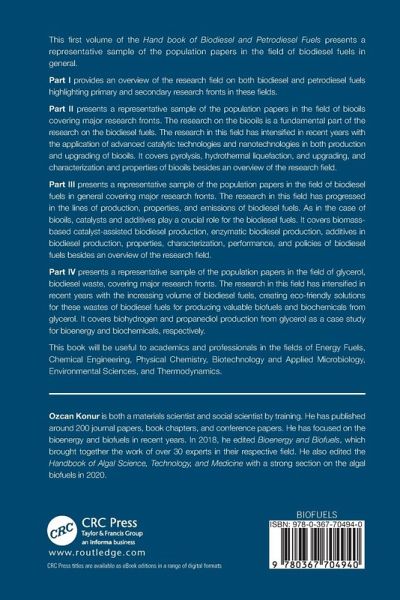 Part 1: Biodiesel and Petrodiesel Fuels: Science, Technology, Health, and Environment. 1. Biodiesel and petrodiesel fuels: Science, technology, health, and the environment. 2. A scientometric review of the research: Biodiesel and petrodiesel fuels. 3. A review of the research: Biodiesel and petrodiesel fuels. 4. Nanotechnology applications in the diesel fuels and related research fields: A review of the research. Part 2: Biooils. 5. Biooils: A scientometric review of the research. 6. Characterization and properties of biooils: A review of the research. 7. Biomass pyrolysis and pyrolysis oils: A review of the research 8. An overview of catalytic bio-oil upgrading, Part I: Processing aqueous-phase compounds. 9. An overview of catalytic bio-oil upgrading, Part II: Processing oil-phase compounds and real bio-oil. 10. Bio-oil production through hydrothermal liquefaction (HTL) of biomass: Recent developments and future prospects. Part 3: Biodiesel fuels in general. 11. Biodiesel fuels: A scientometric review of the research. 12. Biomass-based catalyst-assisted biodiesel production. 13. Enzymatic biodiesel production: challenges and future perspectives. 14. Biodiesel additives: status and perspectives. 15. Qualitative characterization of biodiesel fuels : Basics and beyond. 16. Use of biodiesel fuels in diesel engines. 17. Biodiesel promotion policies: A global perspective. Part 4: Glycerol. 18. Glycerol: A scientometric review of the research. 19. Hydrogen-rich syngas production from Biodiesel-derived glycerol: An overview of the modeling and optimization strategies. 20. Propanediol production from glycerol: A review of the research