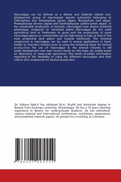 Macroalgae can be defined as a diverse and distantly related non-phylogenetic group of macroscopic aquatic eukaryotes belonging to Chlorophyta and Streptophyta (green algae), Rhodophyta (red algae), Phaeophyceae (brown algae) and Xanthophyceae (yellow-green algae). In the sustainable production of biofuels, macroalgae have several potential advantages compared to terrestrial plants Macroalgae do not need agricultural land or freshwater to grow and the productivity of some macroalgal species or communities can be high being as high as that of the most productive land plants and tropical rainforests. The chemical compounds in macroalgae can be used in several applications in food, fodder or chemistry industry prior to using the remaining tissue for biofuel production. The use of macroalgae in the biofuel industry is still under development and even recent results on this topic are widely based on laboratory or meso-scale operations. This books provides information regarding to the feasibility of using the different macroalgae and their culture and compounds for biofuel production.
