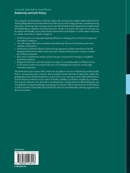This uniquely interdisciplinary textbook explores the exciting and complex relationship between Earth's geological history and the biodiversity of life. Its innovative design provides a seamless learning experience, clarifying major concepts step by step with detailed textual explanations complemented by detailed figures, diagrams and vibrant pictures. Thanks to its layout, the respective concepts can be studied individually, as part of the broader framework of each chapter, or as they relate to the book as a whole. It provides in-depth coverage of: - Earth's formation and subsequent geological history, including patterns of climate change and atmospheric evolution; - The early stages of life, from microbial 'primordial soup' theories to the fossil record's most valuable contributions; - Mechanisms of mutual influence between living organisms and the environment: how life changed Earth's history whilst, at the same time, environmental pressures continue to shape the evolution of species; - Basic ideas in biodiversity studies: species concepts, measurement techniques, and global distribution patterns; - Biological systematics, from their historical origins in Greek philosophy and Biblical stories to Darwinian evolution by natural selection, and to phylogenetics based on cutting-edge molecular techniques. This book's four major sections offer a fresh cross-disciplinary overview of biodiversity and the Earth's history. Among many other concepts, they reveal the massive diversity of eukaryotes, explain the geological processes behind fossilisation, and provide an eye-opening account of the relatively short period of human evolution in the context of Earth's 4.6 billion-year history. Employing a combination of proven didactic tools, the book is simultaneously a reading reference, illustrated guide, and encyclopaedia of organismal biology and geology. It is aimed at school- and university-level students, as well as members of the public fascinated by the intricate interrelationship of living organisms and their environment.