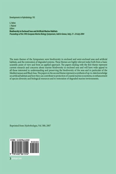 The main themes of the Symposium were biodiversity in enclosed and semi-enclosed seas and artificial habitats, and the restoration of degraded systems. These themes are highly relevant today both from a basic scientific point of view and from an applied approach. The papers dealing with the first theme represent current research and concerns about marine biodiversity in enclosed seas and will have wide appeal to all those interested in understanding and preserving the biodiversity of the seas and in particular of the Mediterranean and Black Seas. The papers in the second theme represent a synthesis of up-to-date knowledge on artificial habitats and how they can contribute to protection of coastal marine ecosystems, to enhancement of species diversity and biological resources and to restoration of degraded marine environments.