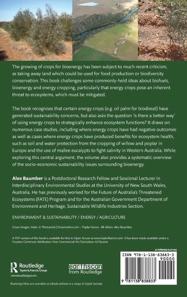 The growing of crops for bioenergy has been subject to much recent criticism, as taking away land which could be used for food production or biodiversity conservation. This book challenges some commonly-held ideas about biofuels, bioenergy and energy cropping, particularly that energy crops pose an inherent threat to ecosystems, which must be mitigated. The book recognises that certain energy crops (e.g. oil palm for biodiesel) have generated sustainability concerns, but also asks the question "is there a better way?" of using energy crops to strategically enhance ecosystem functions. It draws on numerous case studies, including where energy crops have had negative outcomes as well as well as cases where energy crops have produced benefits for ecosystem health, such as soil and water protection from the cropping of willow and poplar in Europe and the use of mallee eucalypts to fight salinity in Western Australia. While exploring this central argument, the volume also provides a systematic overview of the socio-economic sustainability issues surrounding bioenergy.