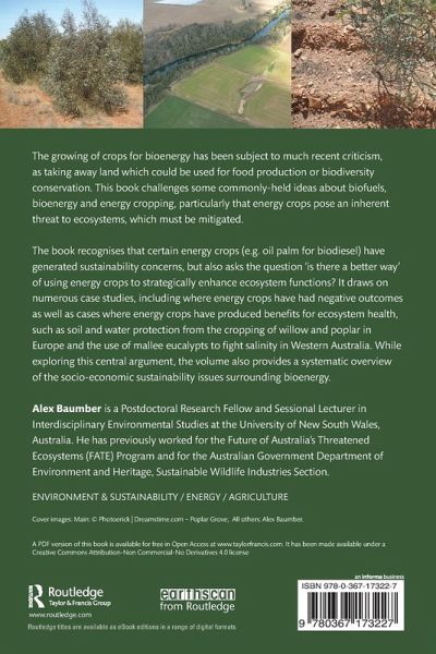 The growing of crops for bioenergy has been subject to much recent criticism, as taking away land which could be used for food production or biodiversity conservation. This book challenges some commonly-held ideas about biofuels, bioenergy and energy cropping, particularly that energy crops pose an inherent threat to ecosystems, which must be mitigated. The book recognises that certain energy crops (e.g. oil palm for biodiesel) have generated sustainability concerns, but also asks the question "is there a better way?" of using energy crops to strategically enhance ecosystem functions. It draws on numerous case studies, including where energy crops have had negative outcomes as well as well as cases where energy crops have produced benefits for ecosystem health, such as soil and water protection from the cropping of willow and poplar in Europe and the use of mallee eucalypts to fight salinity in Western Australia. While exploring this central argument, the volume also provides a systematic overview of the socio-economic sustainability issues surrounding bioenergy.