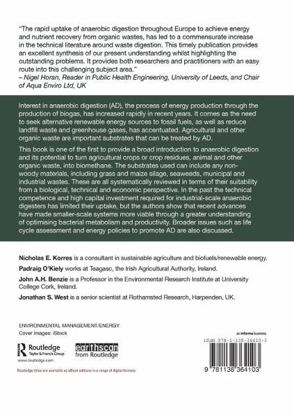 Interest in anaerobic digestion (AD), the process of energy production through the production of biogas, has increased rapidly in recent years. Agricultural and other organic waste are important substrates that can be treated by AD. This book is one of the first to provide a broad introduction to anaerobic digestion and its potential to turn agricultural crops or crop residues, animal and other organic waste, into biomethane. The substrates used can include any non-woody materials, including grass and maize silage, seaweeds, municipal and industrial wastes. These are all systematically reviewed in terms of their suitability from a biological, technical and economic perspective. In the past the technical competence and high capital investment required for industrial-scale anaerobic digesters has limited their uptake, but the authors show that recent advances have made smaller-scale systems more viable through a greater understanding of optimising bacterial metabolism and productivity. Broader issues such as life cycle assessment and energy policies to promote AD are also discussed.
