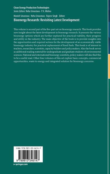 This volume is second part of the five-part set on bioenergy research. This book provides new insight about the latest development in bioenergy research. It presents the various bioenergy options which are further explored for practical viability, their progress and utility in the industry. The main objective of the book is to provide insights into the opportunities and required actions for the development of an economically viable bioenergy industry for practical replacement of fossil fuels. This book is of interest to teachers, researchers, scientists, capacity builders and policymakers.…mehr