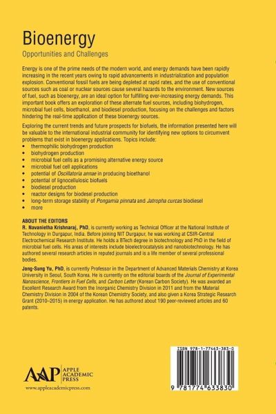 Energy is one of the prime needs of the modern world, and energy demands have been rapidly increasing in the recent years owing to rapid advancements in industrialization and population explosion. Conventional fossil fuels are being depleted at rapid rates, and the use of conventional sources such as coal or nuclear sources cause several hazards to the environment. New sources of fuel, such as bioenergy, are an ideal option for fulfilling ever-increasing energy demands. This important book offers an exploration of these alternate fuel sources, including biohydrogen, microbial fuel cells, bioethanol, and biodiesel production, focusing on the challenges and factors hindering the real-time application of these bioenergy sources. Researchers all over the world are working in this energy sector, and this has led to drastic improvements in bioenergy research. However, the technology gap between research and industrial application still exists. This important book offers engineers and technologists from different disciplines valuable information on this multifaceted field. The field of bioenergy is interdisciplinary, requiring the knowledge of biologists, chemists, physicists, and engineers. Exploring the current trends and future prospects for biofuels, the information presented in this book will be valuable to the international industrial community for identifying new options to circumvent problems that exist in bioenergy applications. Topics include: ¿ Thermophilic biohydrogen production ¿ Bio-hydrogen production ¿ Microbial fuel cells as a promising alternative energy source ¿ Microbial fuel cell applications ¿ Potential of Pscillatoria annae in producing bioethanol ¿ Potential of lignocellulosic biofuels ¿ Biodiesel production ¿ Reactor designs for biodesel production ¿ Long-term storage stability of Pongamia pinnata and Jatropha curcus biodiesel