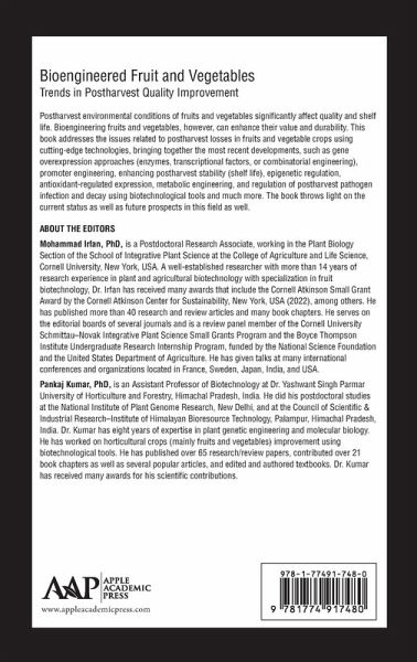 Discusses issues related to postharvest losses in fruits and vegetable crops using latest technologies. Details recent developments, like gene overexpression approaches, promoter engineering, enhancing postharvest stability, antioxidant-regulated expression, and regulation of postharvest pathogen infection and much more.