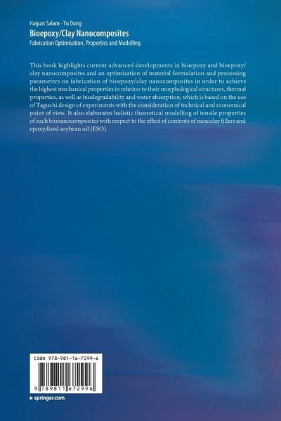 This book highlights current advanced developments in bioepoxy and bioepoxy/clay nanocomposites and an optimisation of material formulation and processing parameters on fabrication of bioepoxy/clay nanocomposites in order to achieve the highest mechanical properties in relation to their morphological structures, thermal properties, as well as biodegradability and water absorption, which is based on the use of Taguchi design of experiments with the consideration of technical and economical point of view. It also elaborates holistic theoretical modelling of tensile properties of such bionanocomposites with respect to the effect of contents of nanoclay fillers and epoxydised soybean oil (ESO).