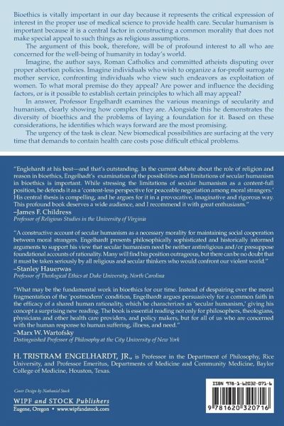Bioethics is vitally important in our day because it represents the critical expression of interest in the proper use of medical science to provide health care. Secular humanism is important because it is a central factor in constructing a common morality that does not make special appeal to such things as religious assumptions. The argument of this book, therefore, will be of profound interest to all who are concerned for the well-being of humanity in today's world. Imagine, the author says, Roman Catholics and committed atheists disputing over proper abortion policies. Imagine individuals who wish to organize a for-profit surrogate mother service, confronting individuals who view such endeavors as exploitation of women. To what moral premise do they appeal? Are power and influence the deciding factors, or is it possible to establish certain principles to which all may appeal? In answer, Professor Engelhardt examines the various meanings of secularity and humanism, clearly showing how complex they are. Alongside this he demonstrates the diversity of bioethics and the problems of laying a foundation for it. Based on these considerations, he identifies which ways forward are the most promising. The urgency of the task is clear. New biomedical possibilities are surfacing at the very time that demands to contain health care costs pose difficult ethical problems.