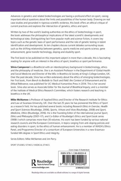 Advances in genetics and related biotechnologies are having a profound effect on sport, raising important ethical questions about the limits and possibilities of the human body. Drawing on real case studies and grounded in rigorous scientific evidence, this book offers an ethical critique of current practices and explores the intersection of genetics, ethics and sport.