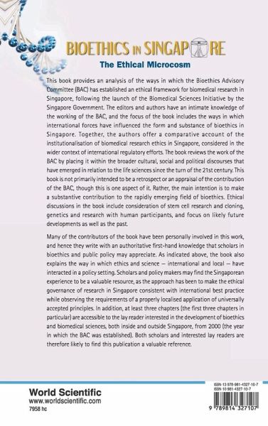 This book provides an analysis of the ways in which the BAC has established an ethical framework for biomedical research in Singapore, following the launch of the Biomedical Sciences Initiative by the Singapore Government. The editors and authors have an intimate knowledge of the working of the BAC, and the focus of the book includes the ways in which international forces have influenced the form and substance of bioethics in Singapore. Together, the authors offer a comparative account of the institutionalisation of biomedical research ethics in Singapore, considered in the wider context of international regulatory efforts. The book reviews the work of the BAC by placing it within the broader cultural, social and political discourses that have emerged in relation to the life sciences since the turn of the 21st century. This book is not primarily intended to be a retrospect or an appraisal of the contribution of the BAC, though this is one aspect of it. Rather, the main intention is to make a substantive contribution to the rapidly emerging field of bioethics. Ethical discussions in the book include consideration of stem cell research and cloning, genetics and research with human participants, and focus on likely future developments as well as the past. Many of the contributors of the book have been personally involved in this work, and hence they write with an authoritative first-hand knowledge that scholars in bioethics and public policy may appreciate. As indicated above, the book also explains the way in which ethics and science international and local have interacted in a policy setting. Scholars and policy makers may find the Singaporean experience to be a valuable resource, as the approach has been to make the ethical governance of research in Singapore consistent with international best practice while observing the requirements of a properly localised application of universally accepted principles. In addition, at least three chapters (the first three chapters in particular) are accessible to the lay reader interested in the development of bioethics and biomedical sciences, both inside and outside Singapore, from 2000 (the year in which the BAC was established). Both scholars and interested lay readers are therefore likely to find this publication a valuable reference.