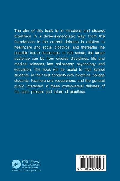 The aim of this book is to introduce and discuss bioethics in a three-synergistic way: from the foundations to the current debates in relation to healthcare and social bioethics, and thereafter the possible future challenges. In this sense, the target audience can be from diverse disciplines: life and medical sciences, law, philosophy, psychology, and education. The book will be useful to high school students, in their first contacts with bioethics, college students, teachers and researchers, and the general public interested in these controversial debates of the past, present and future of bioethics.