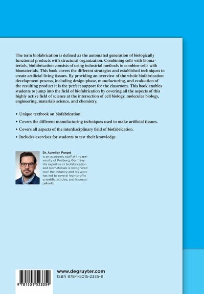 The term biofabrication is defined as the automated generation of biologically functional products with structural organization. Combining cells with biomaterials, biofabrication consists of using industrial methods to combine cells with biomaterials. This book covers the different strategies and established techniques to create artificial living tissues. By providing an overview of the whole biofabrication development process, including design phase, manufacturing, and evaluation of the resulting product it is the perfect support for the classroom. This book enables students to jump into the field of biofabrication by covering all the aspects of this highly active field of science at the intersection of cell biology, molecular biology, engineering, materials science, and chemistry.