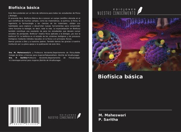 Este libro pretende ser un libro de referencia para todos los estudiantes de Física y Biología. El presente libro, Biofísica Básica da a conocer un campo científico vibrante en el que científicos de muchos campos, como las matemáticas, la química, la física, la ingeniería, la farmacología y las ciencias de los materiales, utilizan sus habilidades para explorar y desarrollar nuevas herramientas para comprender cómo funciona la biología, es decir, toda la vida. La especialización en Biofísica también constituye una excelente vía para los estudiantes que deseen cursar estudios de postgrado. Biofísica" implica física aplicada a la biología: ¿es eso la biofísica? Sí, la biofísica es el estudio de los sistemas biológicos y los procesos biológicos mediante métodos basados en la física o en principios físicos.Damos gracias a Dios y a nuestros padres. También damos las gracias a nuestra institución por su pleno apoyo a la publicación de este libro.