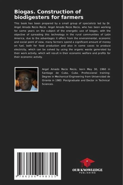 This book has been prepared by a small group of specialists led by Dr. Angel Amado Recio Recio. Angel Amado Recio Recio, who has been working for some years on the subject of the energetic use of biogas, with the objective of spreading this technology in the rural communities of Latin America, due to the advantages it offers from the environmental, economic and social point of view, many farmers spend a significant amount of money on fuel, both for food production and also in some cases to produce electricity, which can be solved by using the organic waste generated by their work activity, which will result in their economic welfare and profits for their economic activity.